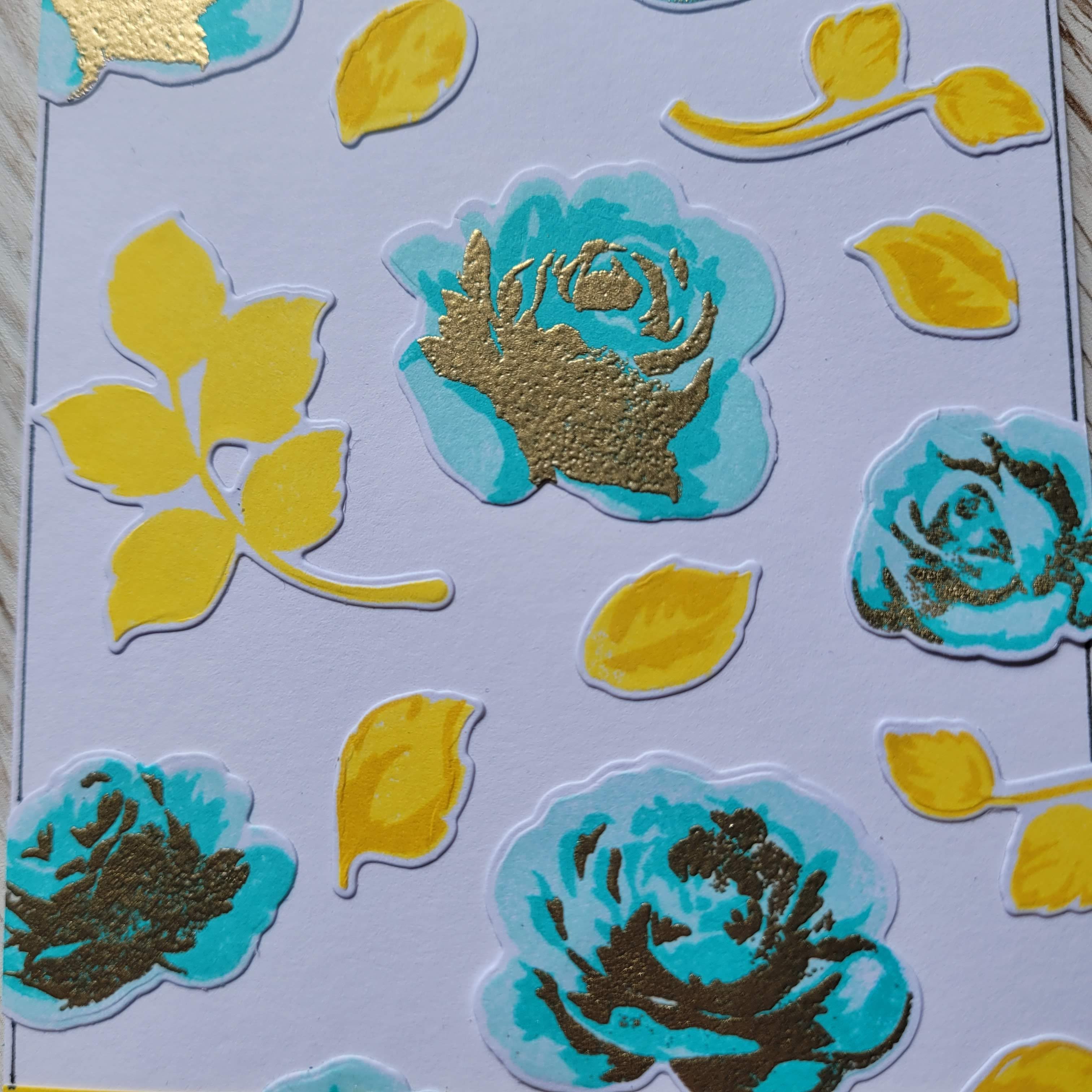 I have also used the half tone everything stamp set (at the time of typing this that stamp set is on sale so grab yourself a bargain!) for the sentiment on this card. Again I stamped it in the same coloured ink as the roses and then did the second outline stamp in gold wow! embossing powder.